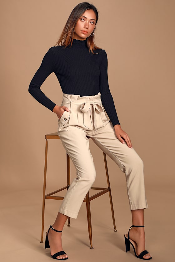 Lulus paper bag pants Clearance, Paperbag Waist Pants - Beige Clearance