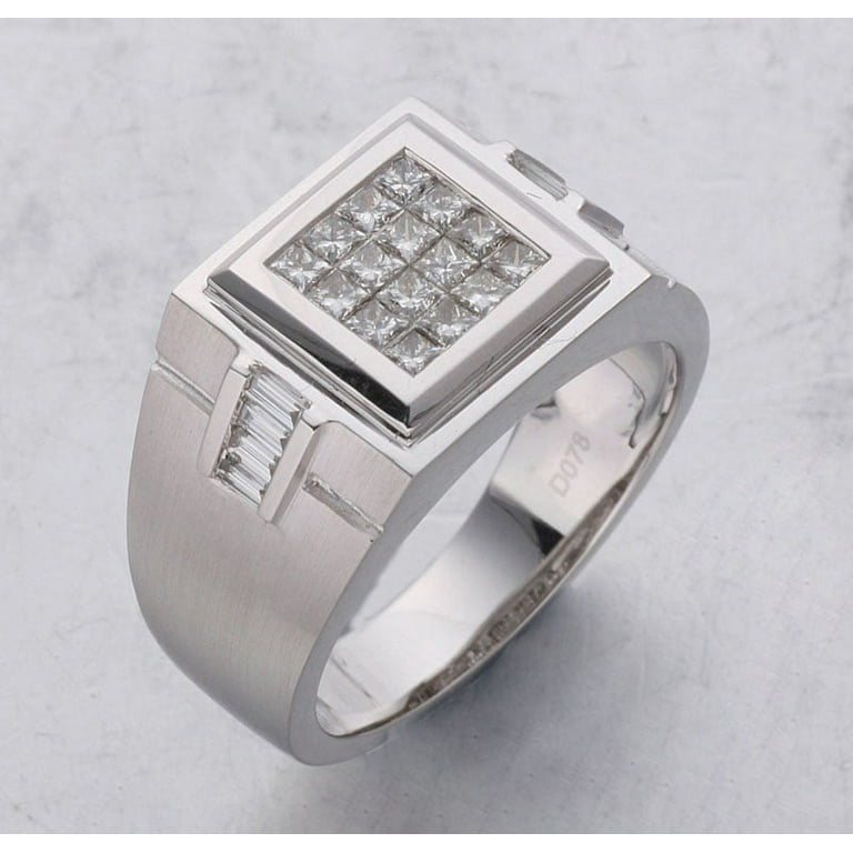 Mens square signet ring with diamond Clearance, Men's 3/4 CT. T.W. Square-Cut Diamond Brushed Signet Ring in 10K White Gold - Walmart.com Clearance