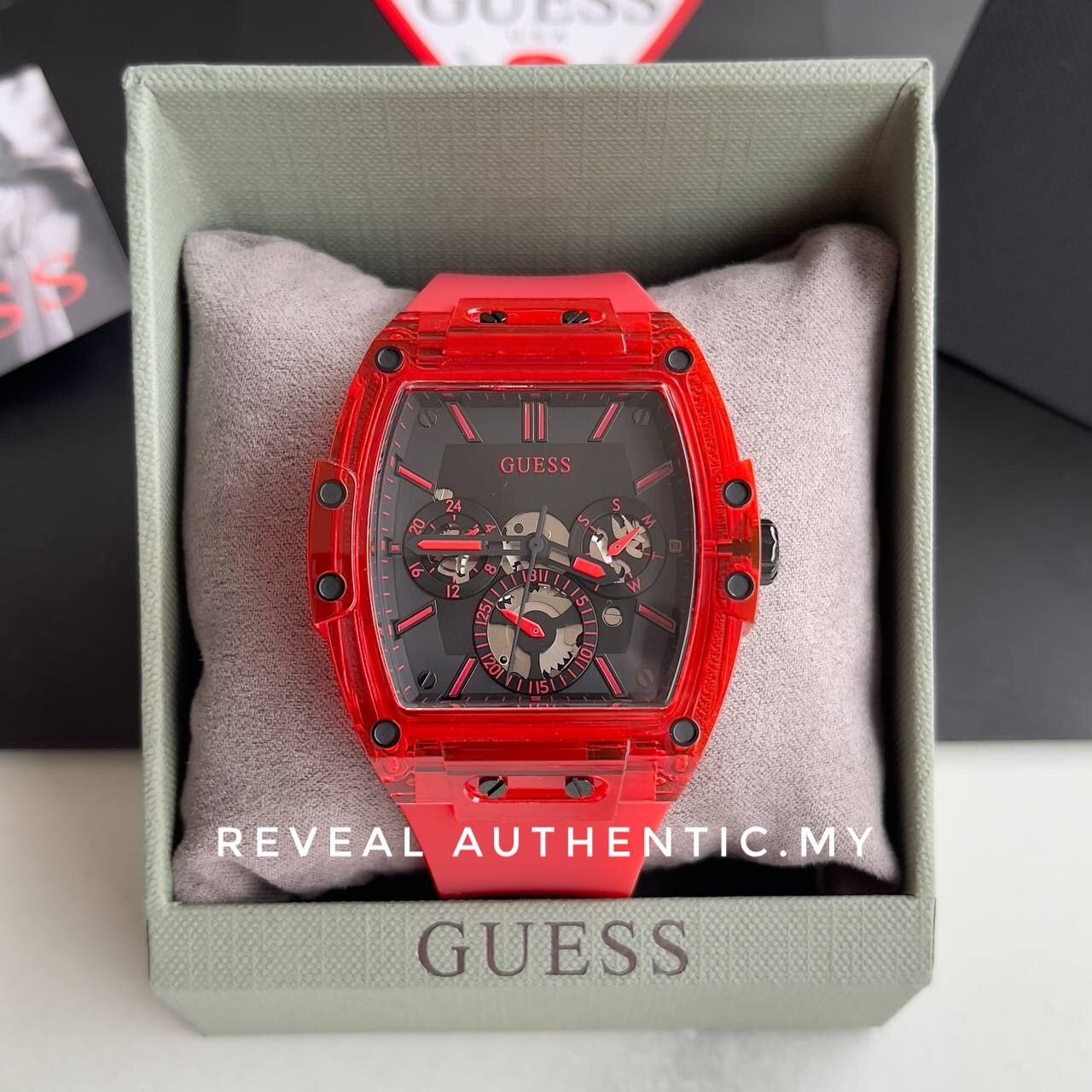 Jam guess merah Clearance, Authentic Guess Men Legacy Black Dial Red Silicon Watch W1049G6 Jam Tangan Lelaki | Lazada Clearance