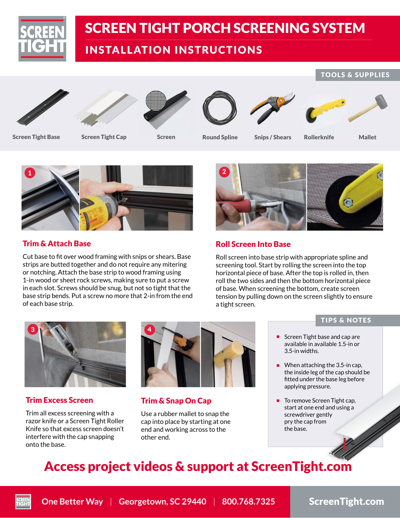 - Screen tight cap and base sold