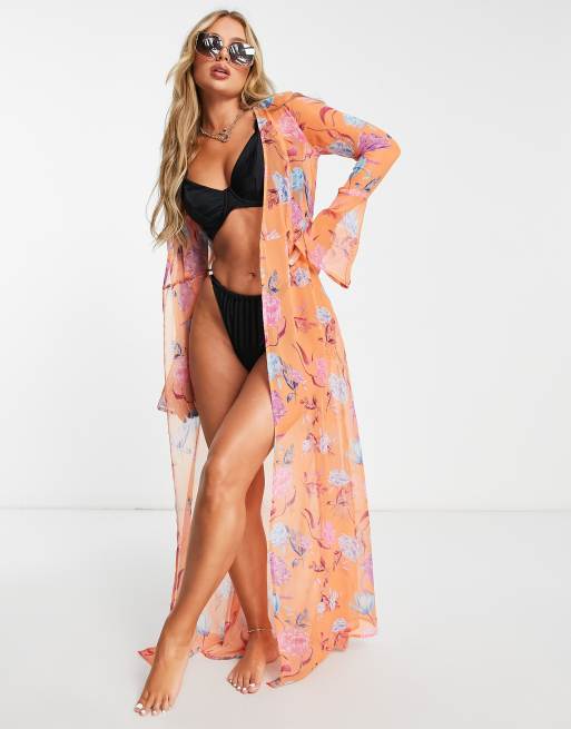 Asos kimonos sale Clearance, ASOS DESIGN chiffon beach kimono in floral | ASOS Clearance