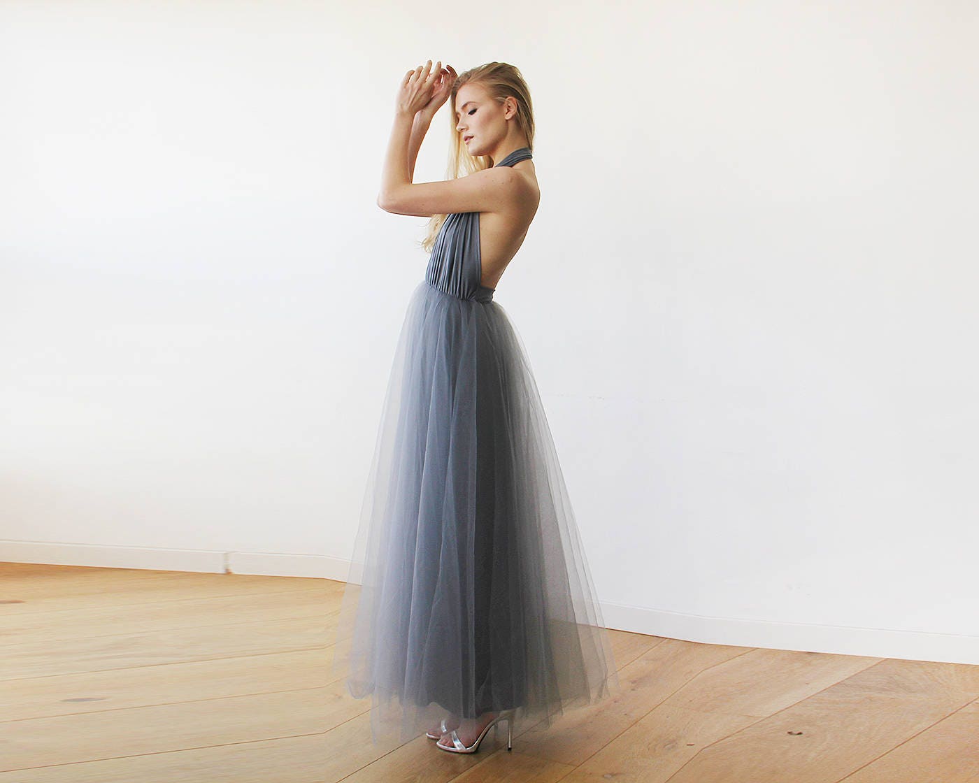 Grey tulle maxi dress Clearance