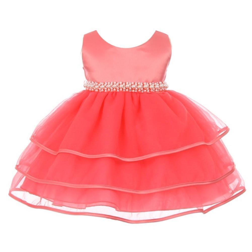 Baby girl coral dress Clearance, Chic Baby Girl Coral Organza Pearl Sash Clearance