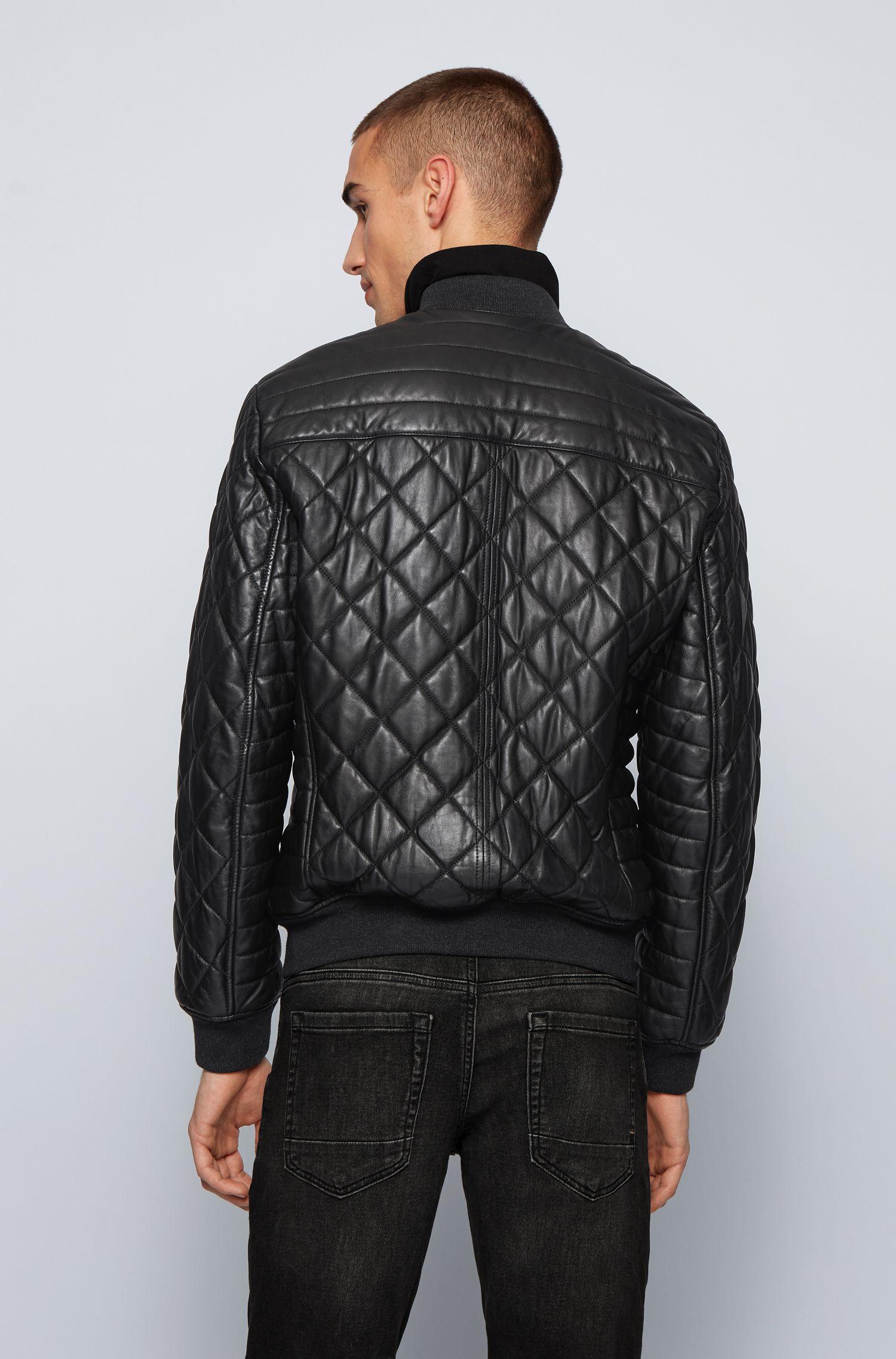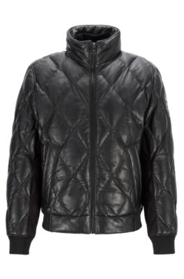 Quilted jacket hugo boss Clearance, Hugo Boss Quilted Bomber Jacket In Olive-tanned Leather In Black | ModeSens Clearance