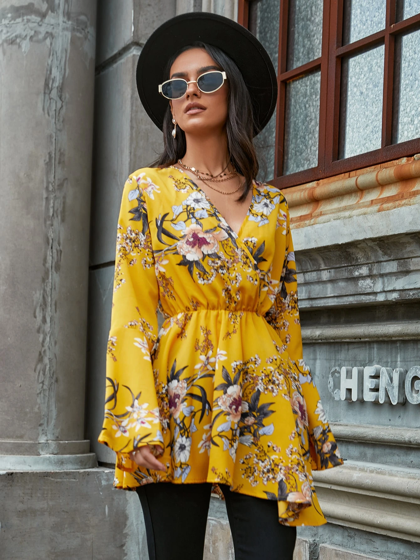 Longline floral blouse Clearance, Floral Print V Neck Bell Sleeve Clearance