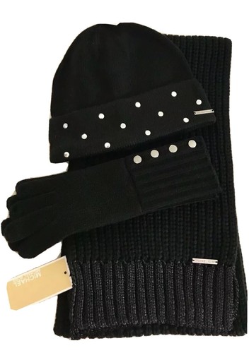 Mk gloves and scarf set Clearance, Michael Kors 3-Piece Set SCARF, HAT u0026amp; GLOVES Black Silver Studs Heavy Stitch NWT | eBay Clearance