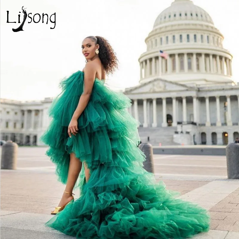 Emerald ruffle dress Clearance, Chiffon long dress, Pretty dresses Clearance