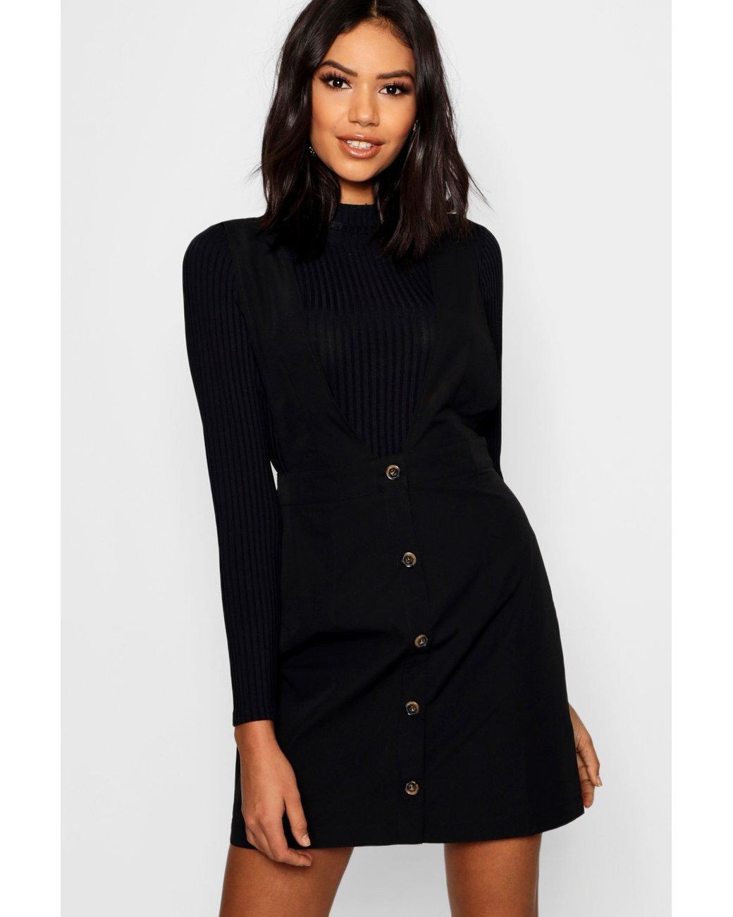 - Plunge front button pinafore dress outlet