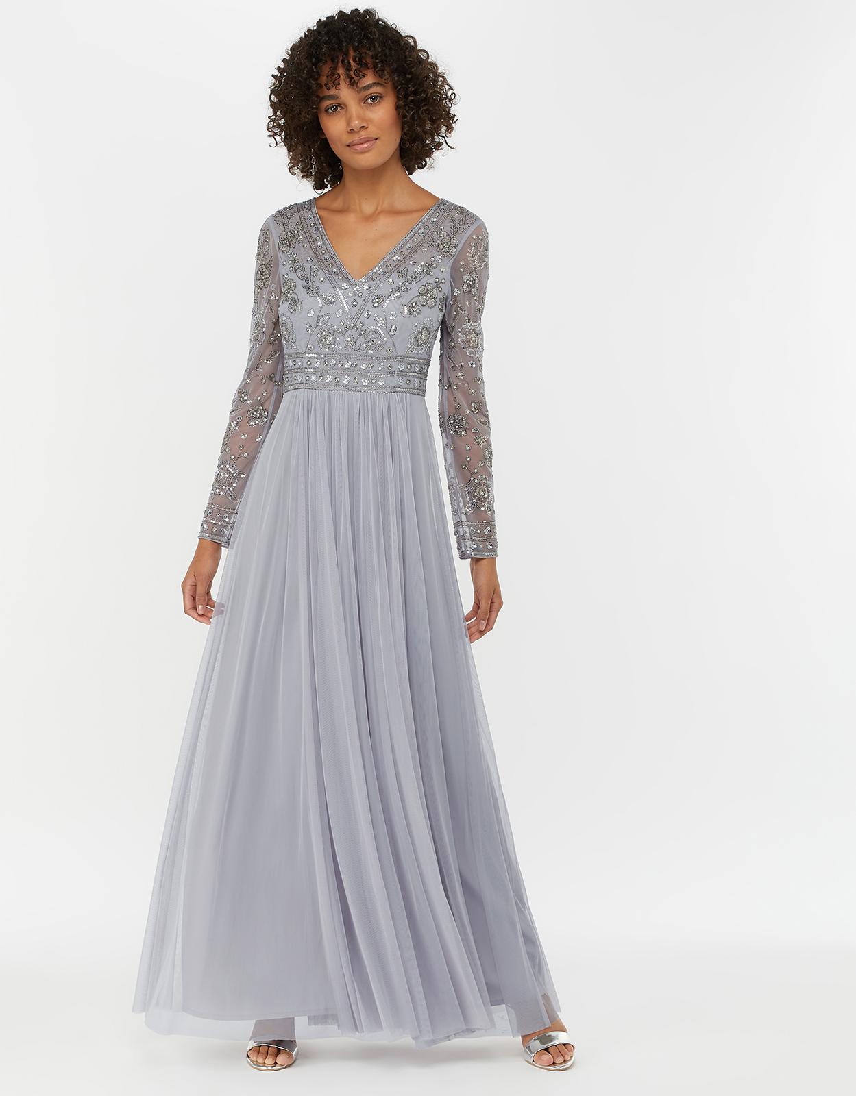 Monsoon grey embellished dress Clearance, Ally Embellished Wrap Maxi Dress Grey Clearance