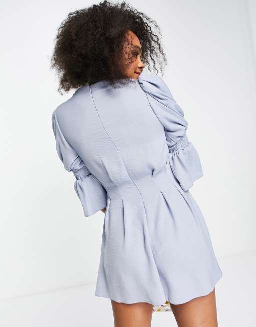 - Asos design tea button shirred sleeve playsuit in soft blue