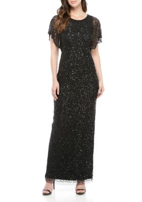 Ap1e202168 Clearance, Adrianna Papell Flutter Sleeve Beaded Mesh Gown | belk Clearance