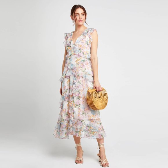 Opt floral dress Clearance, O.P.T. Emilia - White Floral Print Maxi Clearance