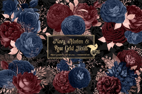 Navy burgundy rose gold wedding Clearance, Navy Maroon and Rose Gold Floral Clearance