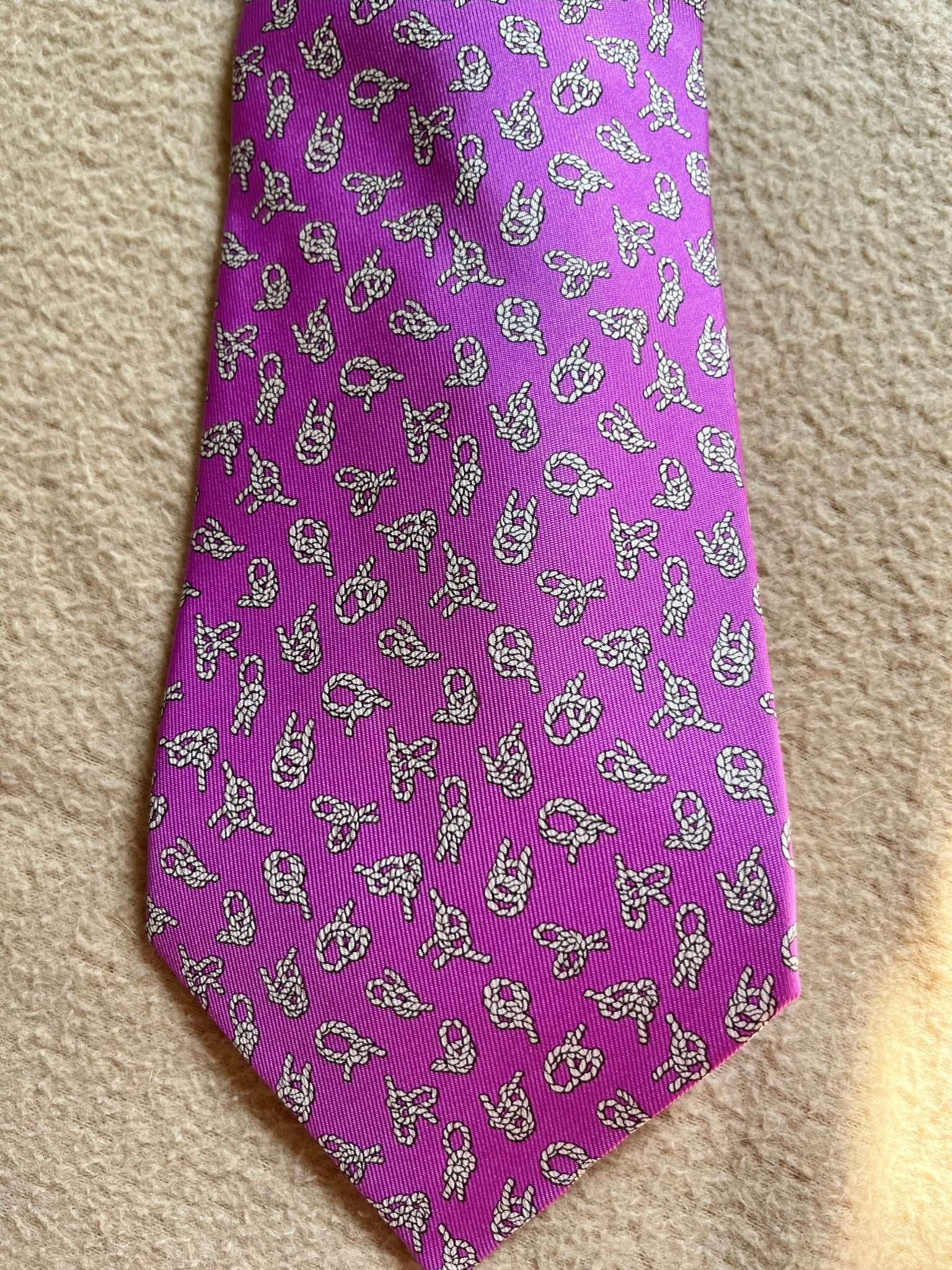 Hermes paisley tie Clearance, Vintage HERMES Mens Tie Authentic Purple White Sailors Knot - Etsy Clearance