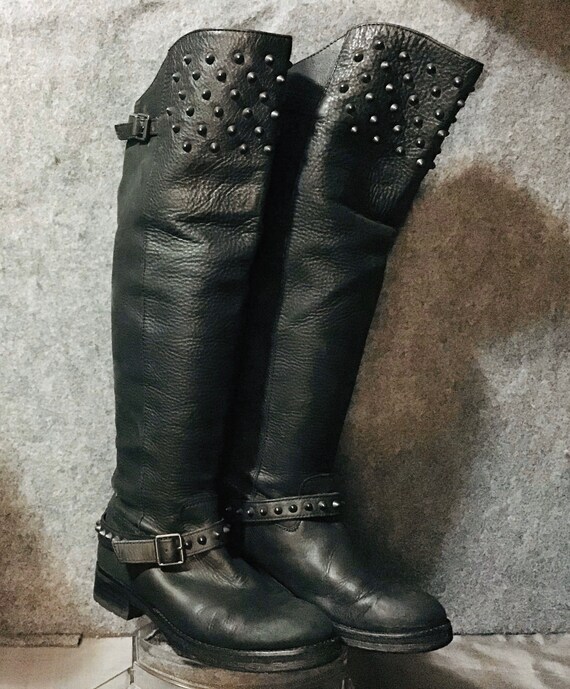 Ash studded biker boots Clearance, Ash Remix Black Studded Knee High Clearance