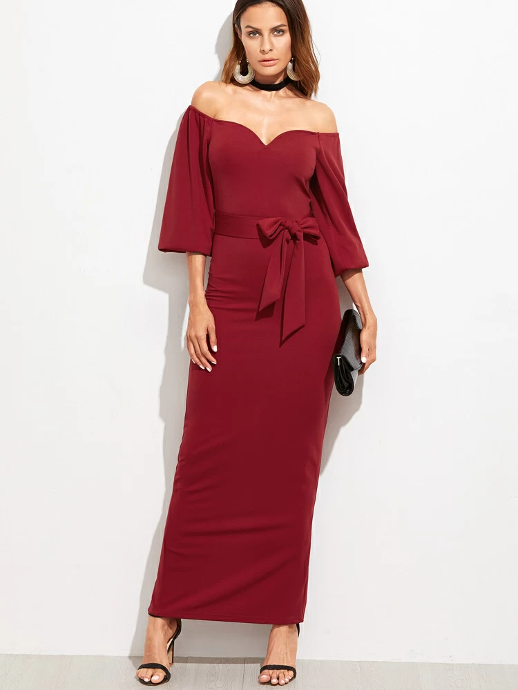 - Off shoulder belted dress sale