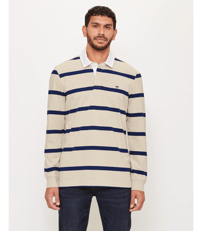 - Striped long sleeve rugby polo