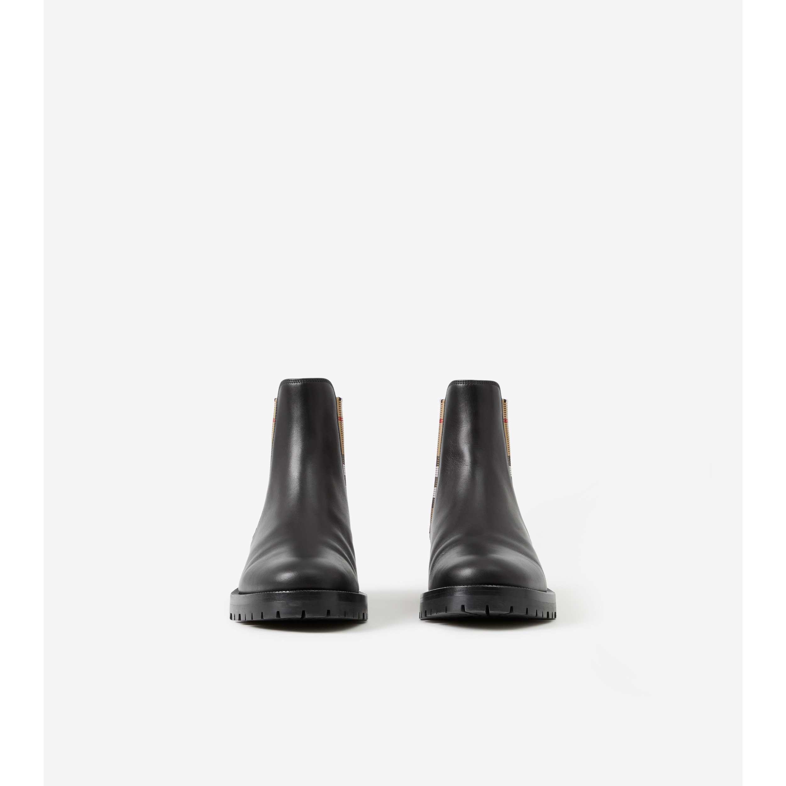 Burberry chelsea boots women's Clearance, Vintage Check Detail Leather Chelsea Boots in Black - Women | Burberry® Official Clearance