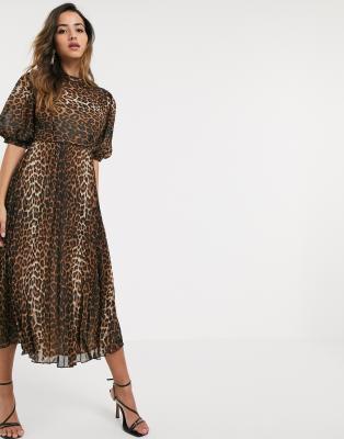 - Leopard print pleated midi dress clearance