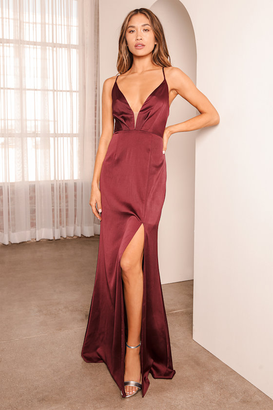 - Burgundy satin maxi dress shop