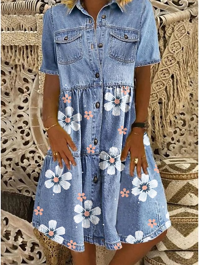 - Shopping Denim shirt dress knee length