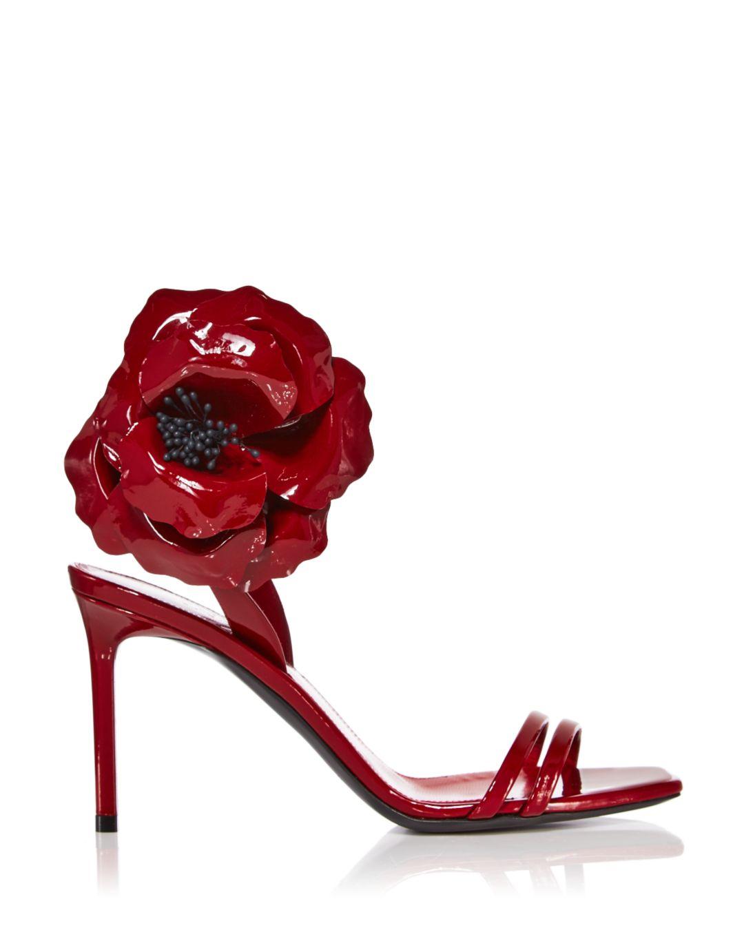 Ysl flower shoes Clearance, Saint Laurent Amber Flower-corsage Patent-leather Sandals In Red | ModeSens Clearance