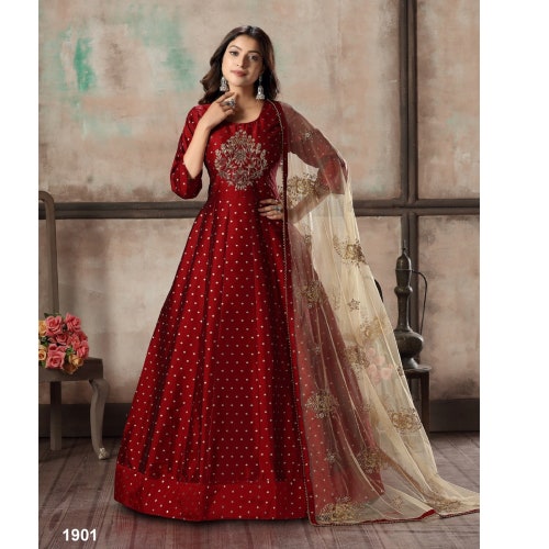 - Red and golden colour gown outlet