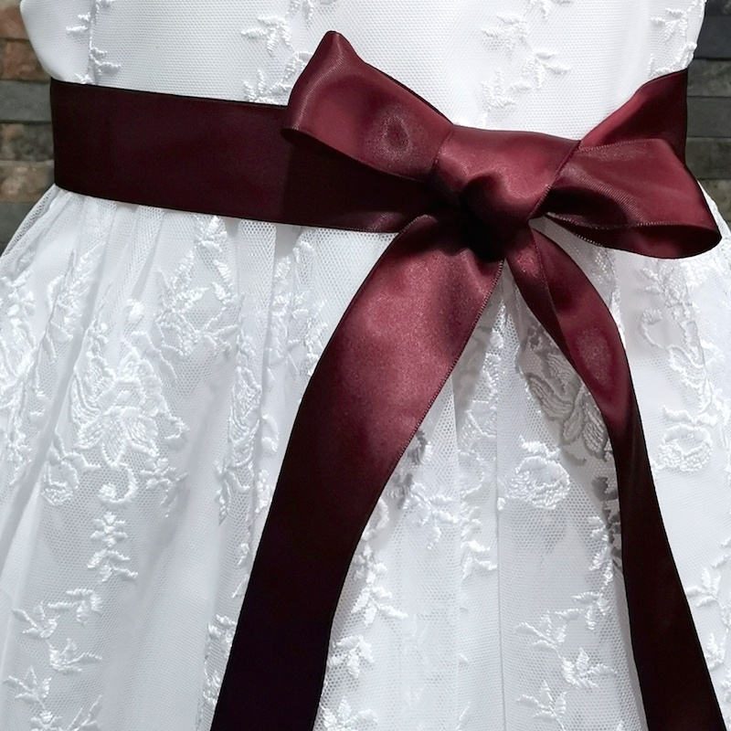 - Burgundy sash for flower girl dress