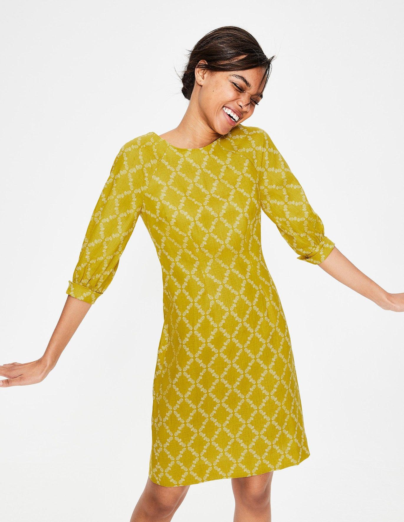 Boden kate linen dress Clearance, Boden Kate Linen Dress Dijon Pineapple Clearance