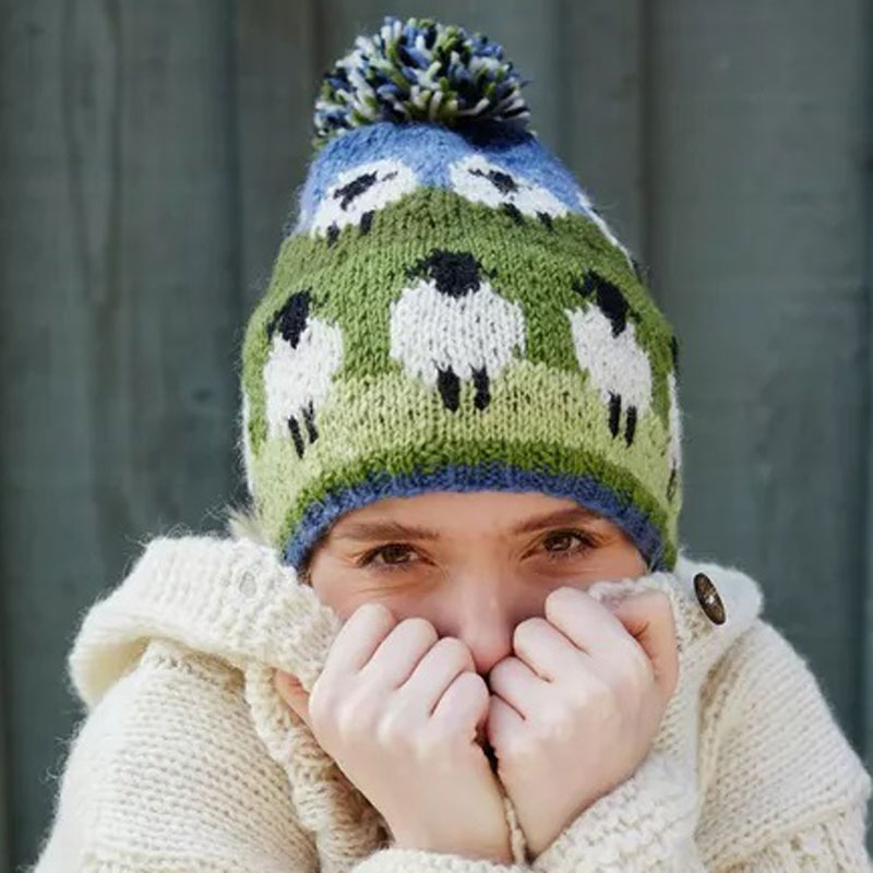 Sheep beanie hat Clearance, Sheep Bobble Hat Pink \u0026 Blue Clearance