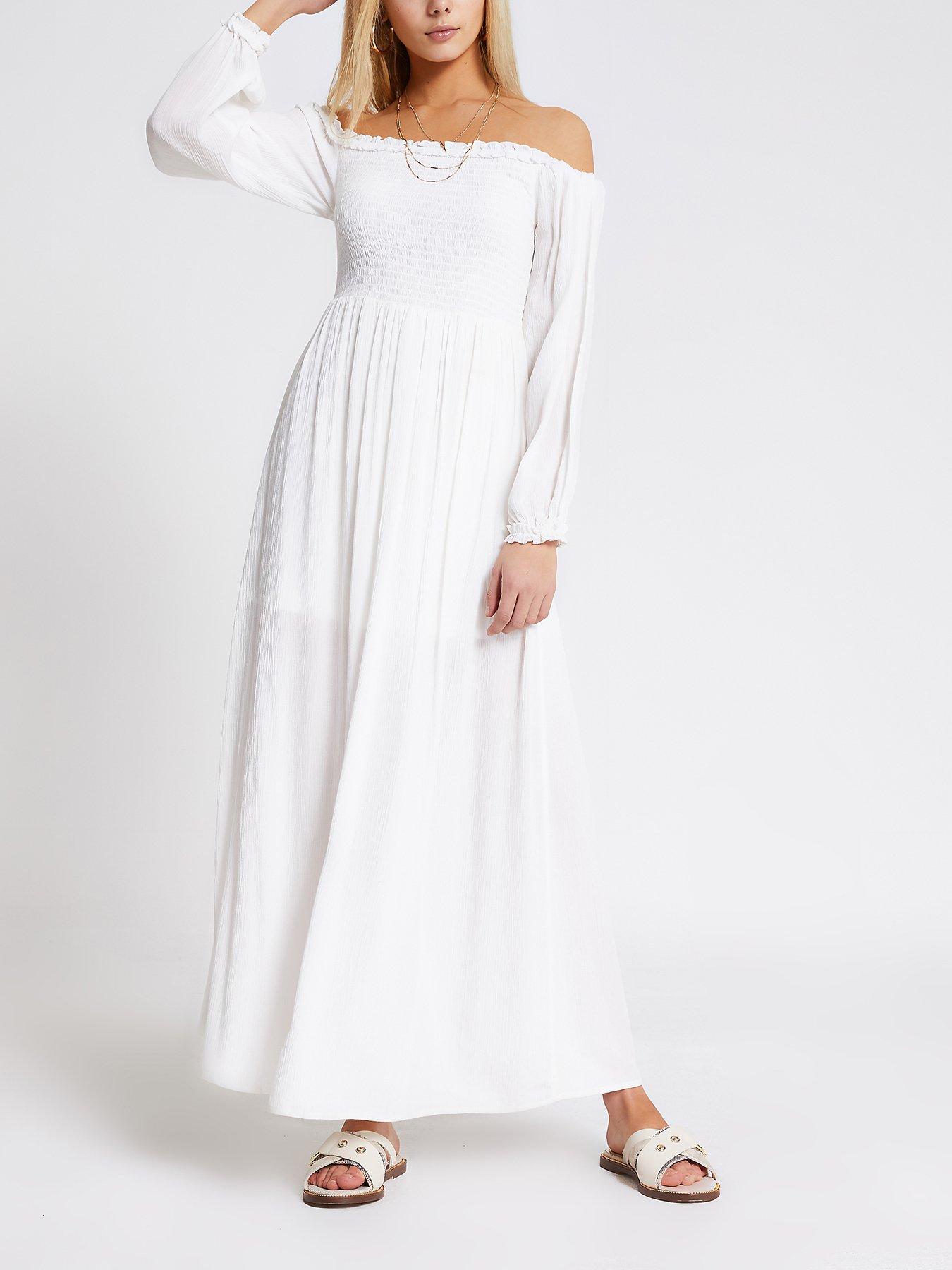 - Shopping White shirred maxi dress