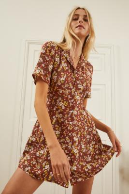 - Brown floral dress with sleeves shop