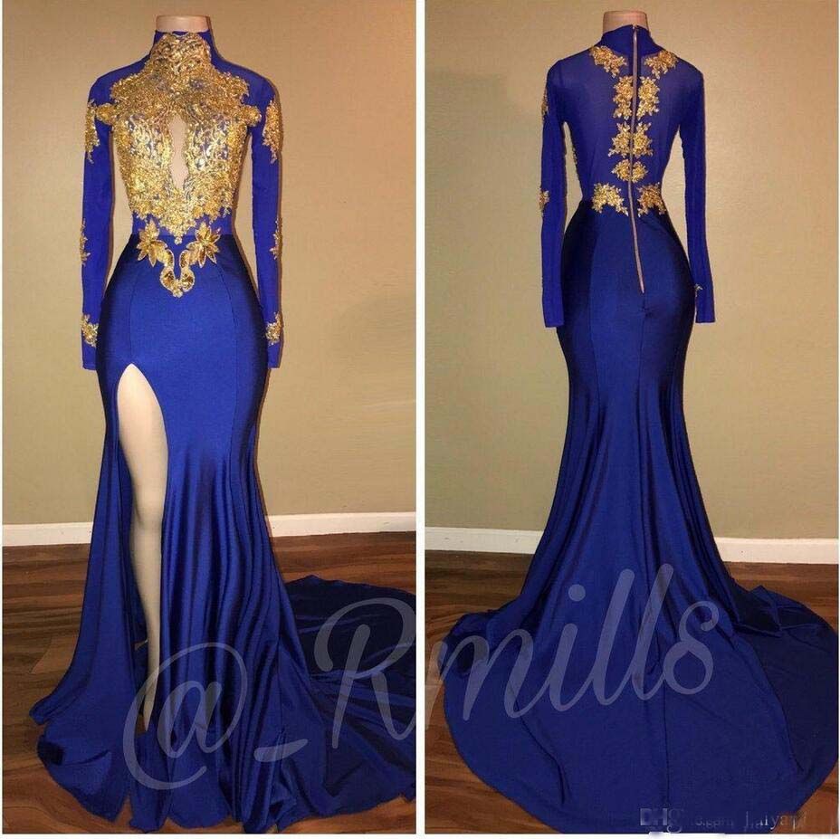 - Royal blue and gold party dress free shipping