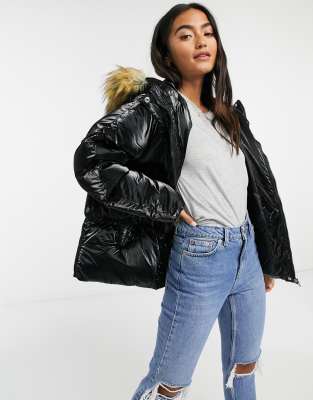 - Shopping High shine puffer jacket fur hood