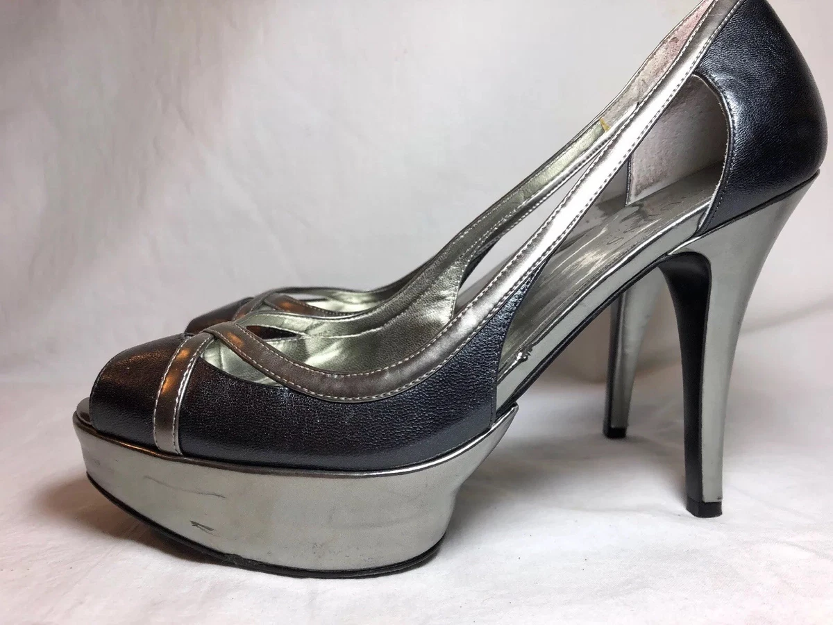 Ebay guess by marciano Clearance, Guess By Marciano Charcoal and Silver Open Toe Heels Size 8M | eBay Clearance