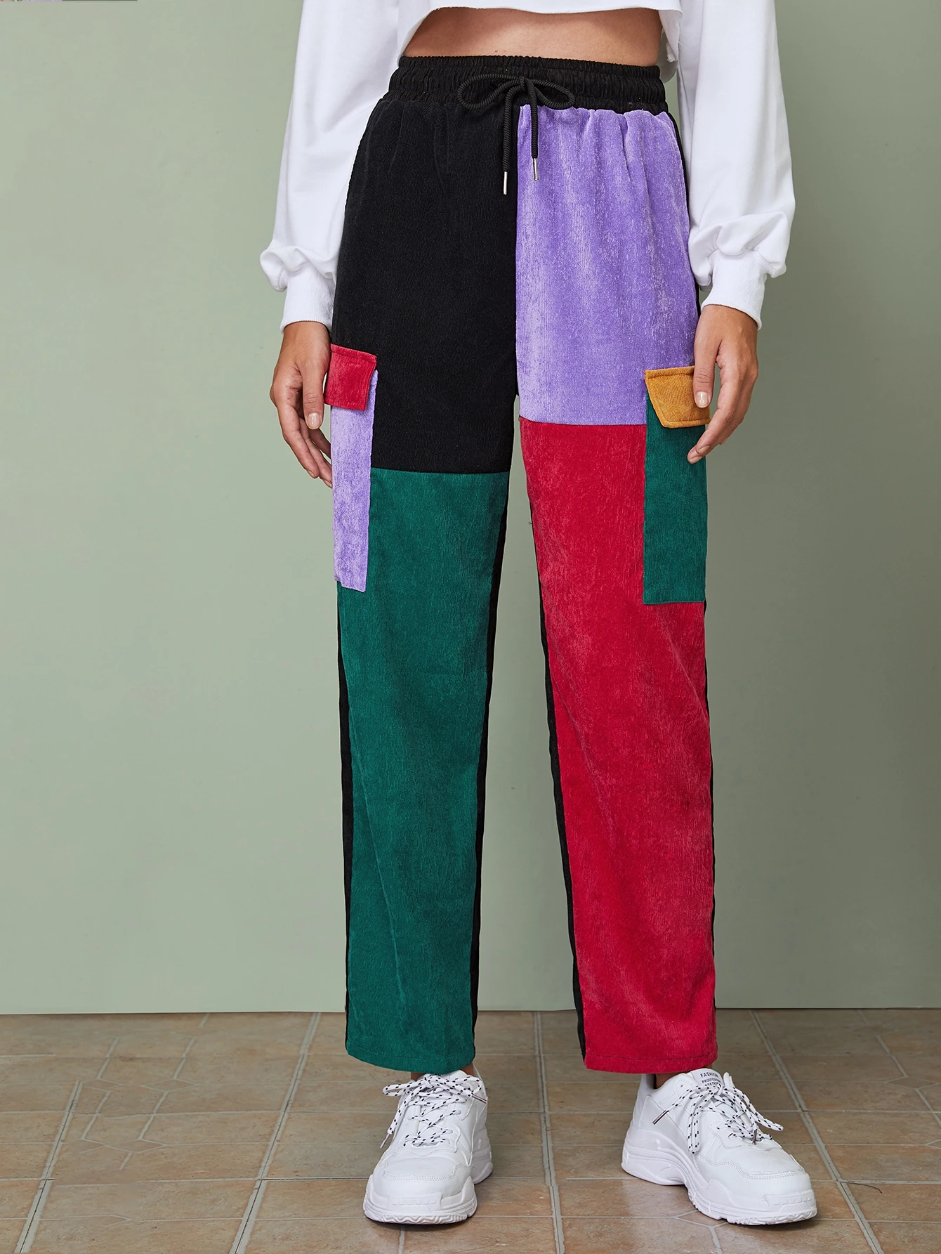 Patchwork pants shein Clearance, SHEIN Drawstring Waist Flap Pocket Clearance