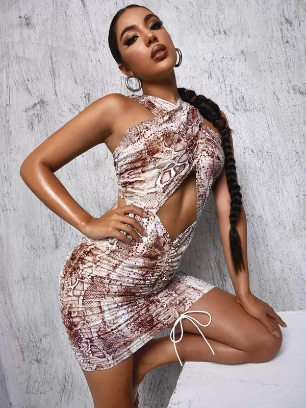Crisscross cutout ruched dress Clearance, Snakeskin Print Crisscross Cutout Clearance