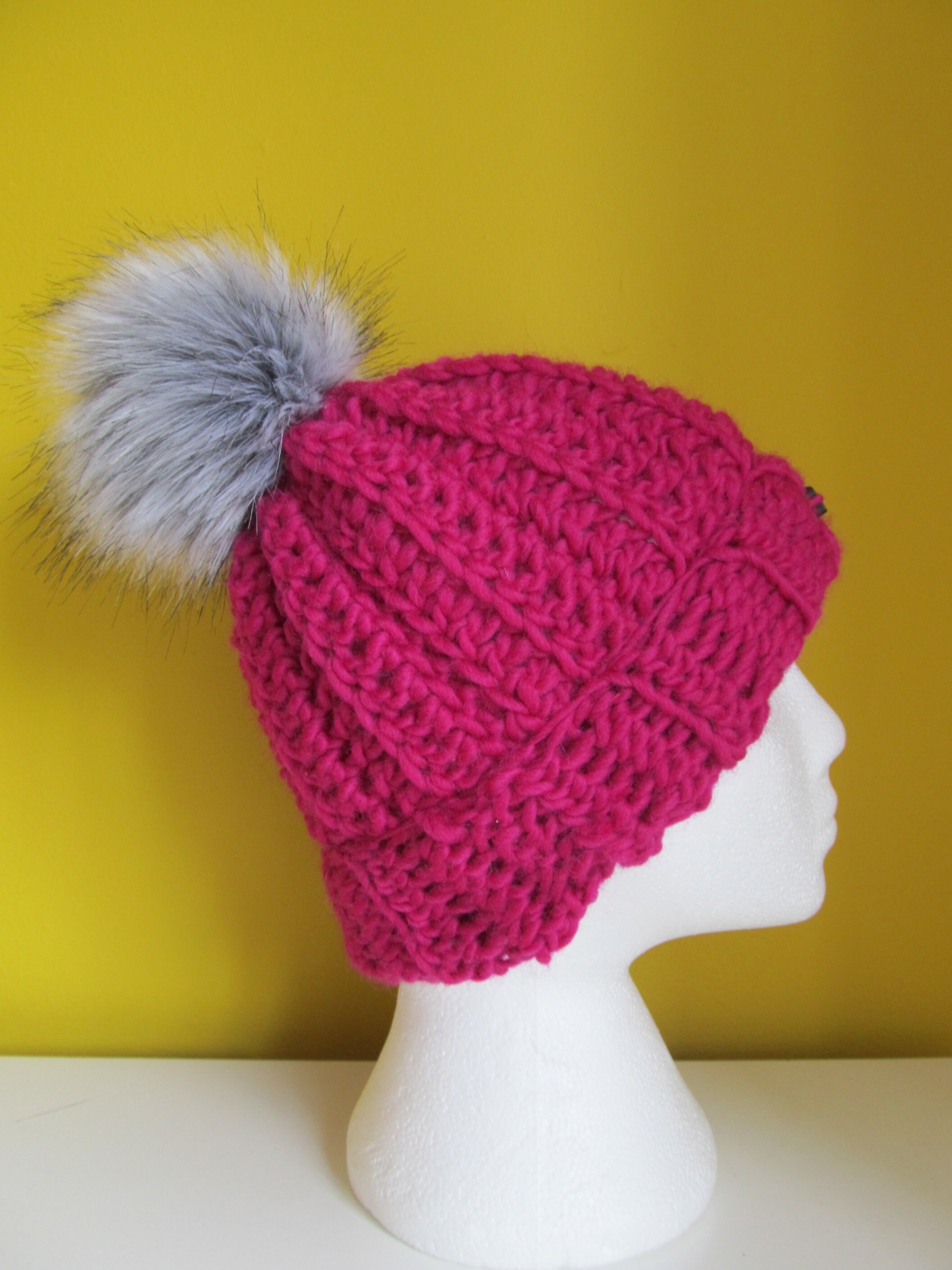 - Bright pink bobble hat sold