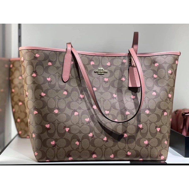 C3240 coach Clearance, Coach C3240 City Tote Bag in Khaki Signature Coated Canvas with Heart Floral Print and Smooth Leather - Women's Bag with Snap Closure | Lazada PH Clearance