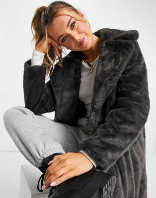 New look faux fur coat Clearance, Dark Grey Collared Faux Fur Jacket Clearance