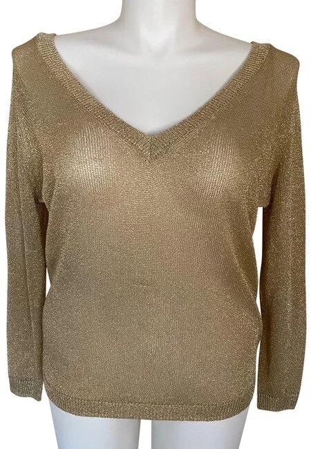 Gold v neck top Clearance, Gold Metallic V-Neck Knit Top Gold Clearance