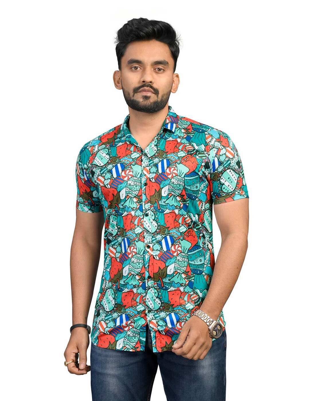 Multicolored shirts Clearance, Men Colorful Geometric Color Block Clearance